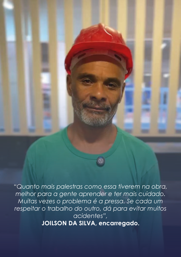 As ações realizadas nos canteiros têm impacto direto na conscientização dos profissionais que participam das palestras, como mostram os depoimentos de quem já participou da campanha.