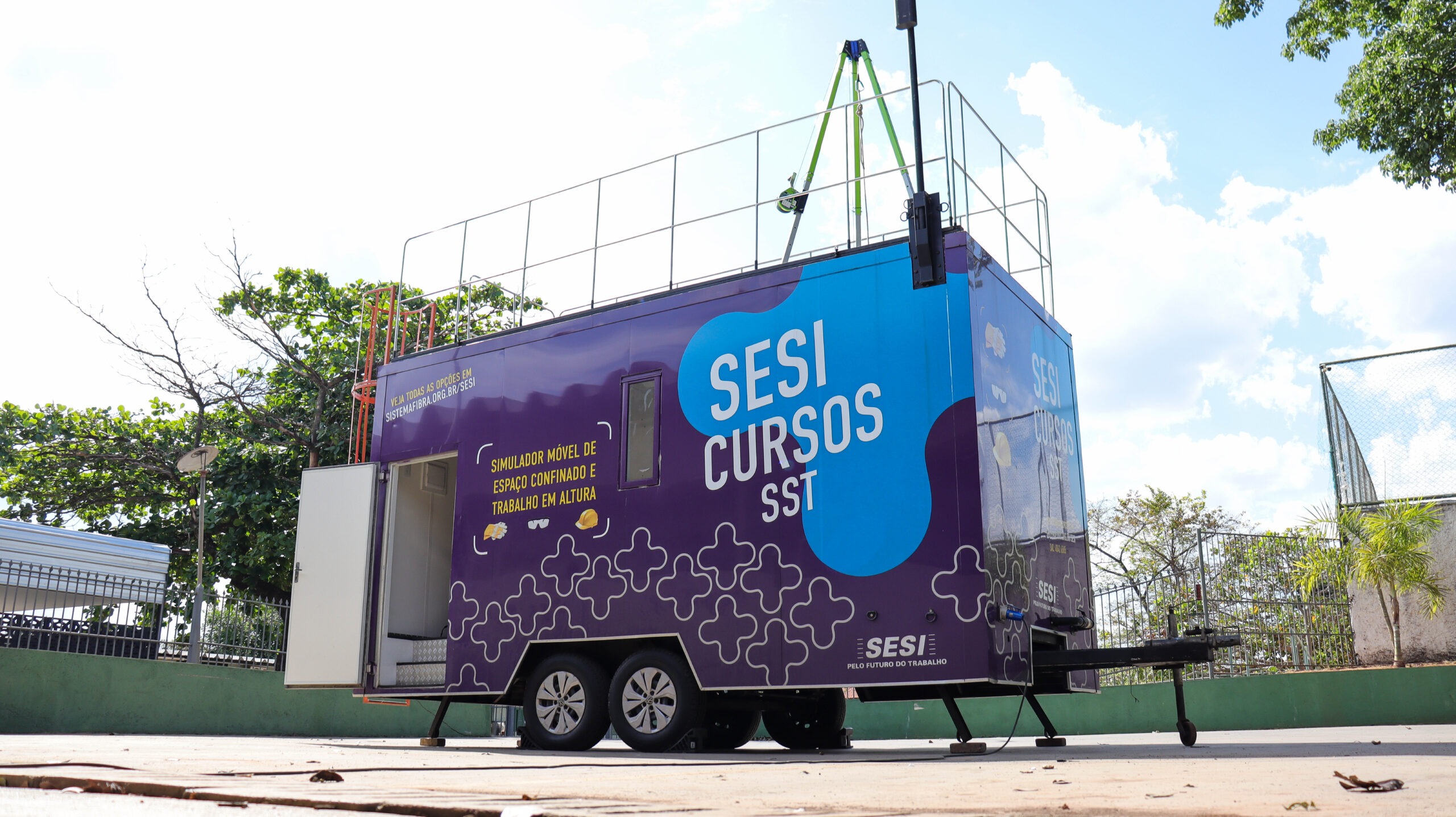 Durante a atividade, técnicos e engenheiros de segurança do Sesi apresentaram equipamentos de proteção e simularam situações de risco em um simulador móvel de espaço confinado e trabalho em altura, atraindo a atenção dos alunos.
