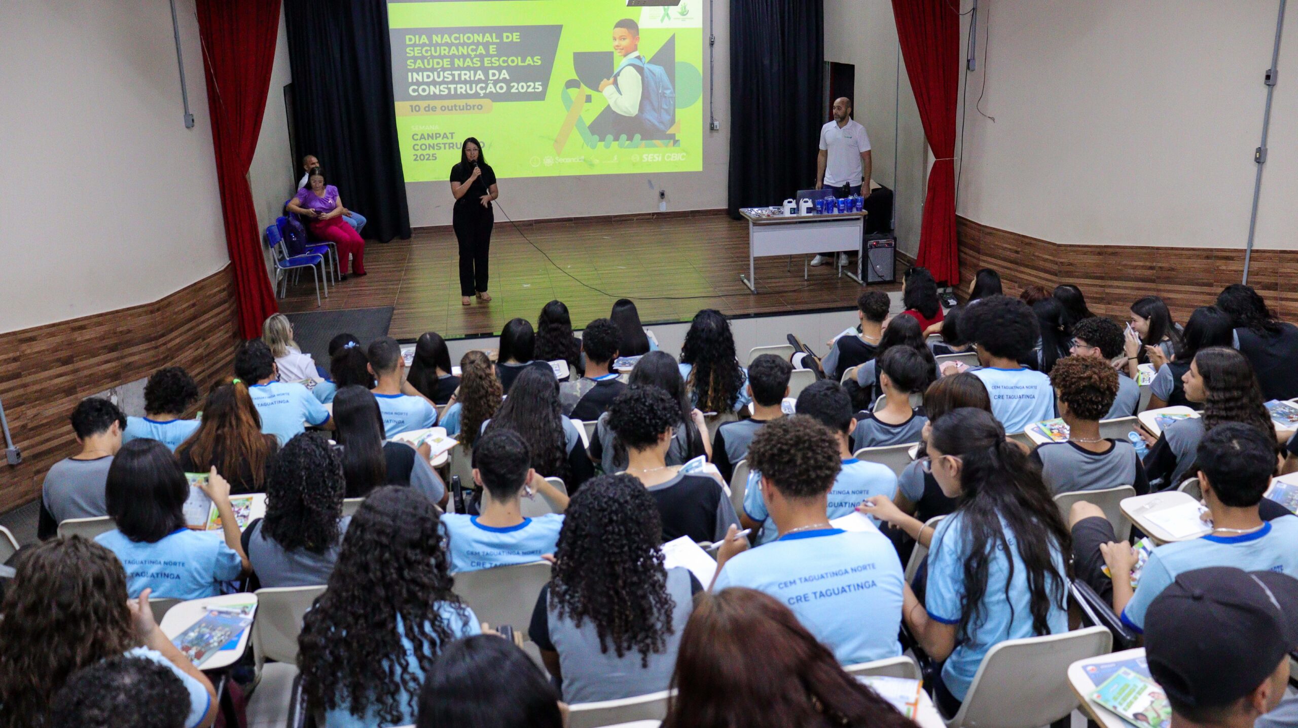 Despertar nos jovens a importância da segurança e da prevenção de acidentes, dentro e fora do ambiente de trabalho, foi o foco do encerramento da Semana CANPAT Construção 2025, realizado nesta sexta-feira (10), no Centro de Ensino Médio Taguatinga Norte, no Distrito Federal. A ação marcou a celebração do Dia Nacional de Segurança e Saúde nas Escolas | Indústria da Construção 2025, reunindo estudantes e profissionais do setor em um dia de aprendizado e conscientização.