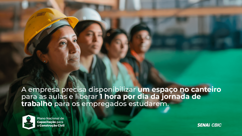Para as empresas que querem levar capacitação para dentro das obras, a Câmara Brasileira da Indústria da Construção (CBIC) e o SENAI lançaram um programa para formar e treinar trabalhadores. O Plano Nacional de Capacitação para a Construção Civil (PNCCC) oferece cursos gratuitos e certificados pelo SENAI para trazer aperfeiçoamento profissional, inclusão social e desenvolvimento para o setor.