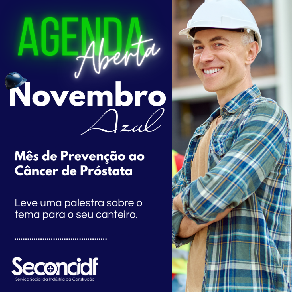 O Seconci-DF iniciou oficialmente a agenda de palestras do Novembro Azul, mês dedicado à saúde do homem e à prevenção do câncer de próstata. As atividades são gratuitas e voltadas às empresas e trabalhadores da construção civil do Distrito Federal.