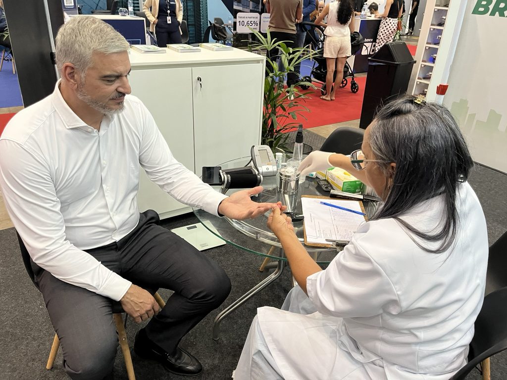 O presidente da ADEMI-DF, Celestino Fracon Júnior, também esteve no estande realizando os exames oferecidos pela equipe de saúde. Ele destacou o bom momento do mercado imobiliário no Distrito Federal. “O setor tem registrado desempenho positivo, mesmo diante dos desafios. As empresas seguem investindo e atendendo à demanda por moradia em Brasília e no Entorno. Assim geramos emprego, renda e qualidade de vida para as pessoas”, afirmou Fracon.